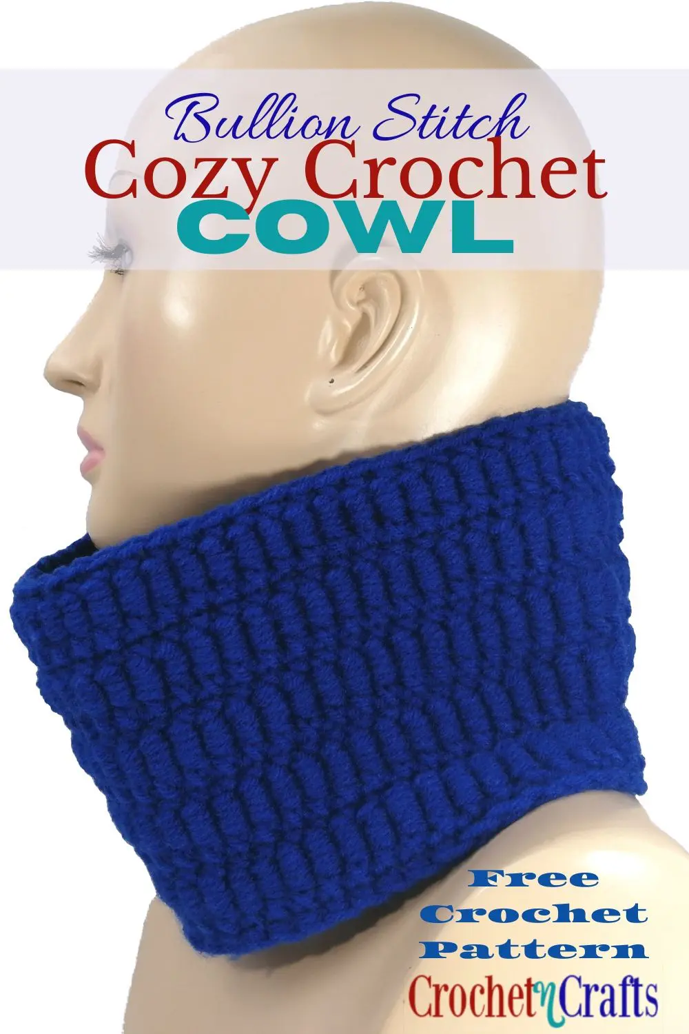 The bullion stitch cozy crochet cowl is perfect for keeping your chin and neck cozy against the cold winter wind. It’s nice and sturdy, so it stays up on it’s own. Plus, there is no stitch multiple, so you can easily make this for any size that you need.