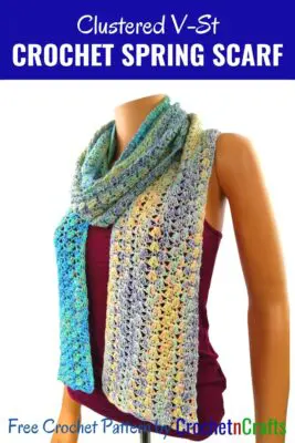 Clustered V-St Crochet Spring Scarf