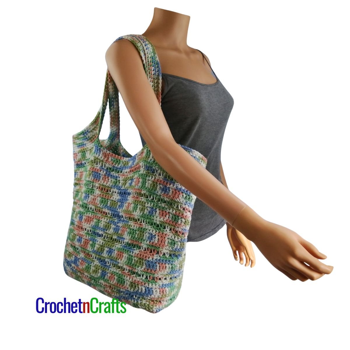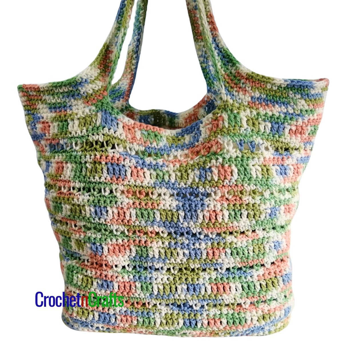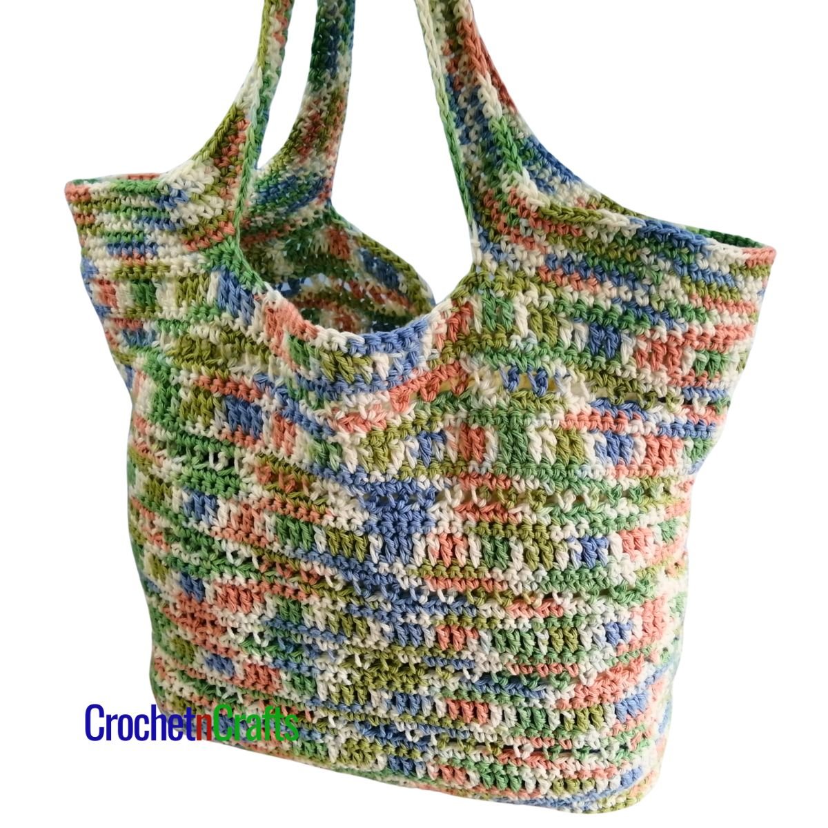 This crochet bag pattern starts at the bottom and is worked to the top in one piece, including the handles.
