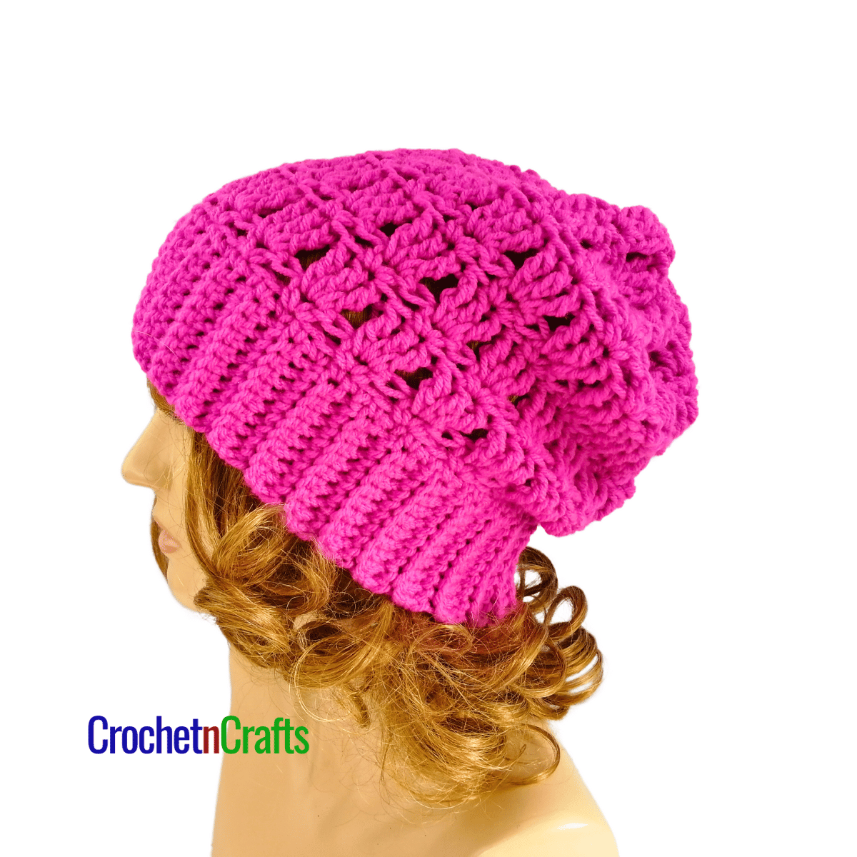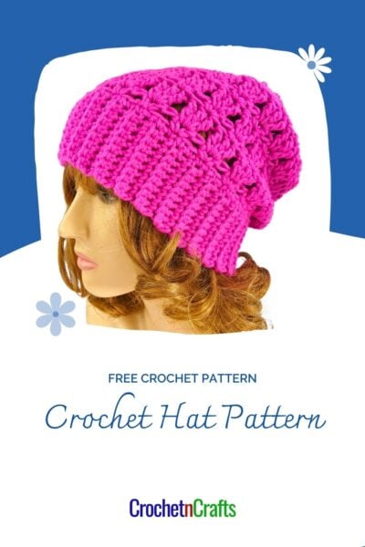This easy hat crochet pattern is perfect for the spring and fall weather. It has an open stitch to add a layer of warmth without overheating in mild temperatures. It’s a pretty stitch to wear with just about anything from casual to more elegant occasions.