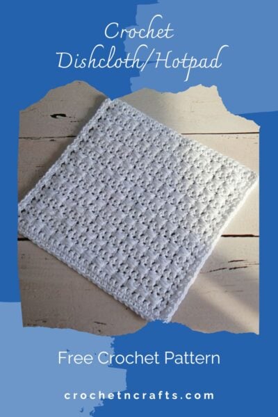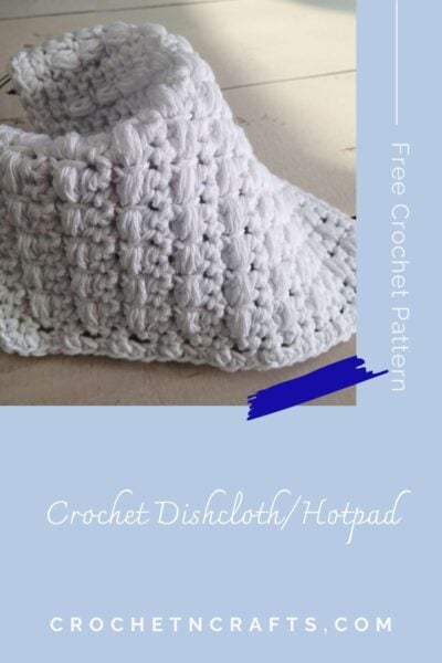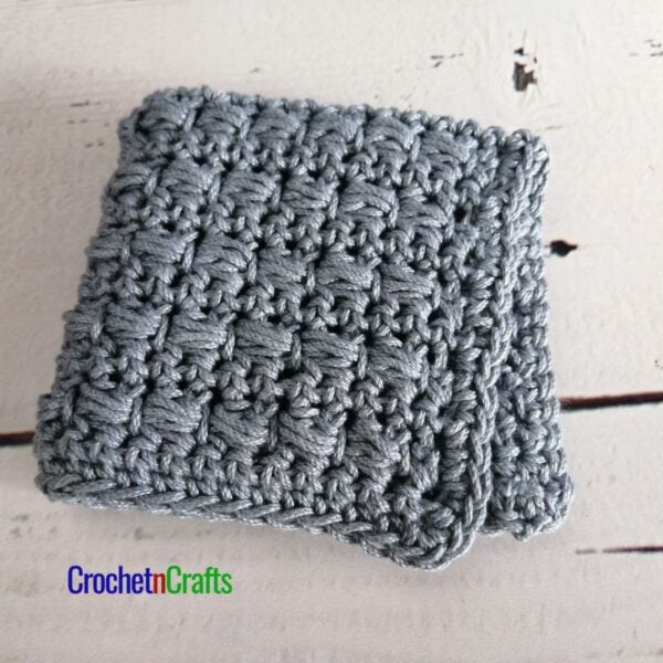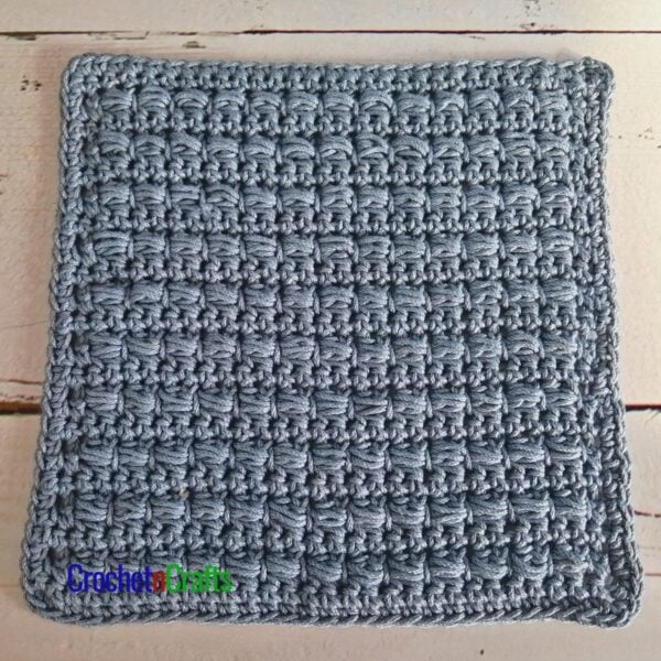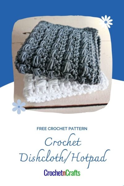 Crochet a dishcloth or a hotpad with this horizontal puff stitch pattern. The puff stitch offers a beautiful texture, perfect for scrubbing and protecting your tables. It also makes this crochet dishcloth and hotpad durable, making it a great gift idea. For more dishcloth patterns, check out my collection on Etsy with 25+ Crochet Dishcloth patterns.