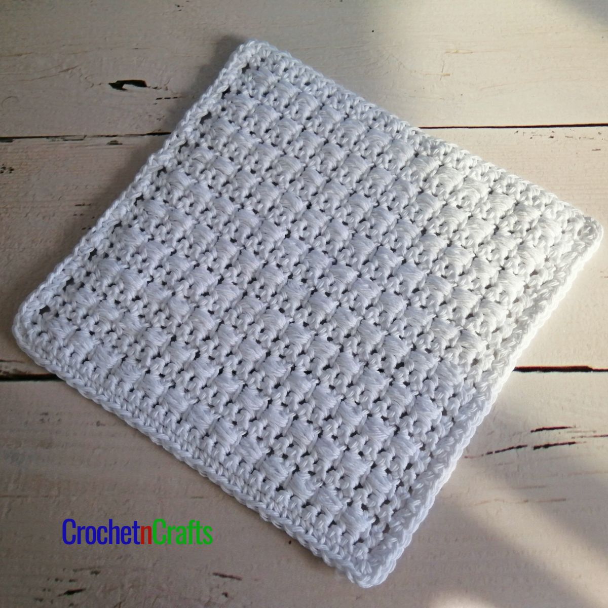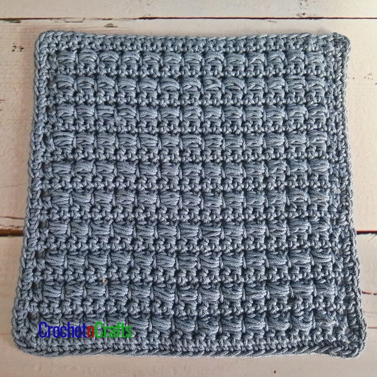 Crochet a dishcloth or a hotpad with this horizontal puff stitch pattern. The puff stitch offers a beautiful texture, perfect for scrubbing and protecting your tables. It also makes this crochet dishcloth and hotpad durable, making it a great gift idea. For more dishcloth patterns, check out my collection on Etsy with 25+ Crochet Dishcloth patterns.