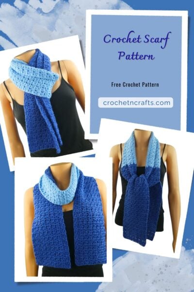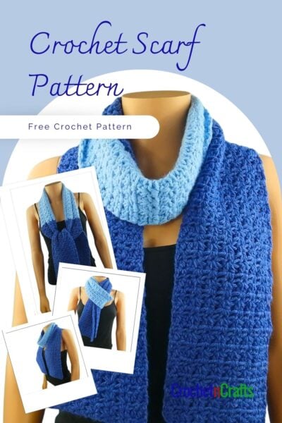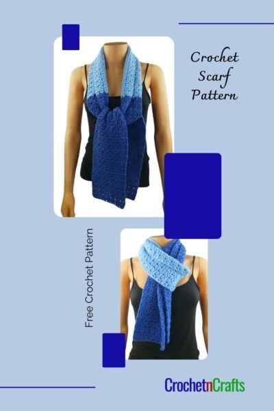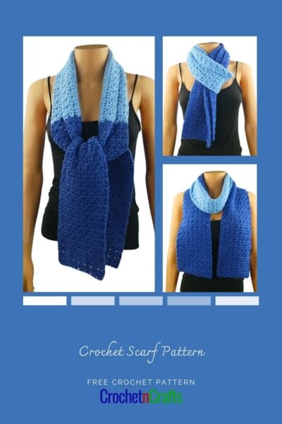 Sometimes a simple crocheted scarf like this is just what you need to keep cozy in the cooler weather. It is worked with two colors in a color-block design, but you could just as well add a few stripes throughout for a completely different look.